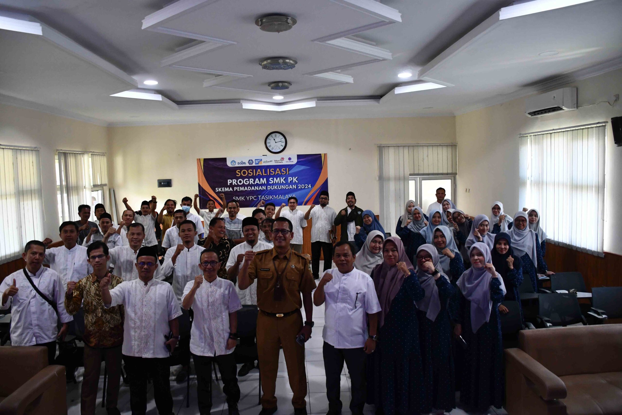 Aula Pertemuan SMK YPC merupakan fasilitas multifungsi yang digunakan untuk berbagai kegiatan sekolah, seperti seminar, workshop, pelatihan, pertemuan resmi, dan acara perayaan. Aula ini memiliki kapasitas yang luas serta dilengkapi dengan panggung, sistem audio, proyektor, dan pencahayaan yang mendukung kenyamanan dalam setiap acara.